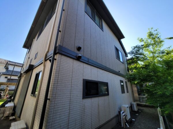千葉県市原市U様邸|外壁塗装|初めての外壁塗装・外壁の汚れや色褪せが目立っていました(施工前の様子と足場の設置〜高圧洗浄) 2025年3月5日更新 皆さん、こんにちは! 外壁塗装・屋根工事・リフォーム専門店|木村建装です! 千葉県市原市のU様から「外壁の汚れや色褪せが目立つので、メンテナンスをしたい」とのことで、外壁塗装のご依頼をいただきました。 施工前の様子から施工後の様子まで、数回に分けてレポートして参ります。 ぜひ最後までご覧ください(^^)/ 今回は施工前の様子と、養生の様子をご紹介します。 目次1 U様邸の施工前の様子2 足場と飛散防止ネットを設置し、高圧洗浄を行いました U様邸の施工前の様子 こちらが施工前のU様邸です。 玄関ドアとその周辺の外壁のブルーがアクセントの、お洒落な雰囲気のご自宅ですね! 築20年が経ち外壁の色褪せや、窓枠の辺りの雨だれなど汚れが目立っていました。 日当たりの悪い場所には、汚れとカビが発生していました。 同じ外壁でも、日当たりの良さによって劣化症状が異なります。 日当たりがいい場所は色褪せのスピードが早く、日当たりの悪い場所はカビや苔が発生しやすいです。 どちらも塗膜の劣化が原因と考えられます。 雨樋も色褪せが目立っていました。 また、手で触ると白いチョークのような粉が付着する「チョーキング現象」がおきていました。 チョーキング現象は、塗膜の機能が落ちてきている証拠でもあり、放置してしまうとひび割れて破損する恐れがあります。 チョーキング現象は、塗り替えの代表的なサインです。 ⇒大切なお住まいを守るために、こんな症状には要注意! 足場と飛散防止ネットを設置し、高圧洗浄を行いました 外壁塗装を行うにあたり、まず初めに行うのが足場の設置です。 足場を設置することで、手が届きにくい高所作業も安全に行うことができます。 足場を設置したら飛散防止ネットを設置します。 飛散防止ネットには、近隣住宅や敷地に塗料や高圧洗浄の水が飛び散らないようにする役割などがあります。 仕事の正確さや近隣トラブルを避けるためにも、必要不可欠なものです。 お家の周りをぐるっと一周、足場と飛散防止ネットを設置しました。 外壁塗装工事では、下記のような理由でトラブルになってしまうことがあります。 ・事前に挨拶や説明など何もなかった ・家の前に業者の車やトラックなどの作業者が駐車されて困る ・強烈な塗料の匂いがする ・作業員の話し声がうるさく、マナーがなっていない このようなトラブルを避けるため、施工前にはご近所様にご挨拶に伺います。 もちろん施工中も、細心の注意を払って作業を行います。 車両の出入り・作業日程・内容など、一通りご案内させていただきますので、ご安心ください。 ⇒お客様からよくいただくご質問をまとめました 高圧洗浄を行いました。 高圧洗浄で汚れやホコリを丁寧に取り除くことで、美しい外壁塗装が可能になります。 次に、コーキング作業を行います。 コーキングについては次回の記事でご紹介しますので、ぜひご覧ください! ⇒「住宅工事が初めての方へ」 外壁塗装・屋根工事・リフォームのことなら、千葉県袖ケ浦市・市原市・木更津市・君津市・地域密着の木村建装へお気軽にご相談ください。 袖ケ浦市・市原市の瓦屋根・漆喰工事 | 木村建装の専門施工 =S= 千葉県袖ヶ浦市の外壁塗装・屋根リフォーム専門店 https://kimura-kensou.com/ 住所:千葉県袖ケ浦市袖ケ浦駅前1-27-9 スタジオハイヴ2号室 お問い合わせ窓口:0120-506-046 (9:00~18:00 土日祝も営業中) 対応エリア:千葉県袖ケ浦市、他 ★ 地元のお客様の施工実績多数掲載! 施工実績 https://kimura-kensou.com/case/ お客様の声 https://kimura-kensou.com/voice/ ★ 塗装工事っていくらくらいなの?見積りだけでもいいのかな? ➡一級塗装技能士の屋根、外壁の無料点検をご利用ください! 無理な営業等は一切行っておりません! 外壁屋根無料診断 https://kimura-kensou.com/inspection/ ★色を塗る前にシミュレーションしたい、塗装以外の工事方法はないの? どんな塗料がいいの? 業者はどうやって選べばいいの? ➡ どんなご質問でもお気軽にお問い合わせください! お問い合わせ https://kimura-kensou.com/contact/